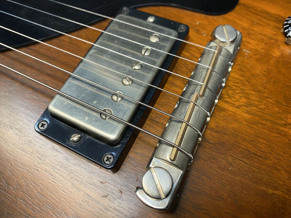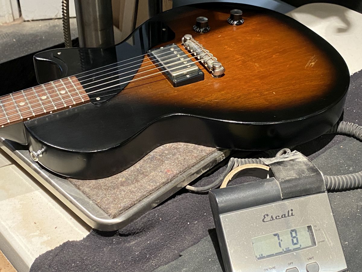 2010 Gibson Les Paul Junior – Limited Edition Humbucker in Vintage Sunburst. Satin Finish solid mahogany body with maple top – Neck shape: ’50s Rounded – 24.75″ scale mahogany set neck with 22-frets – 12″-radius rosewood fingerboard. 7lbs – 8oz after conversion.