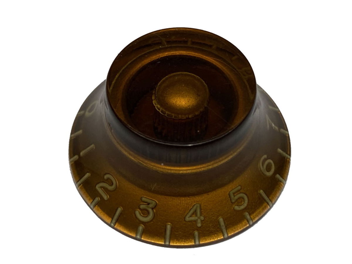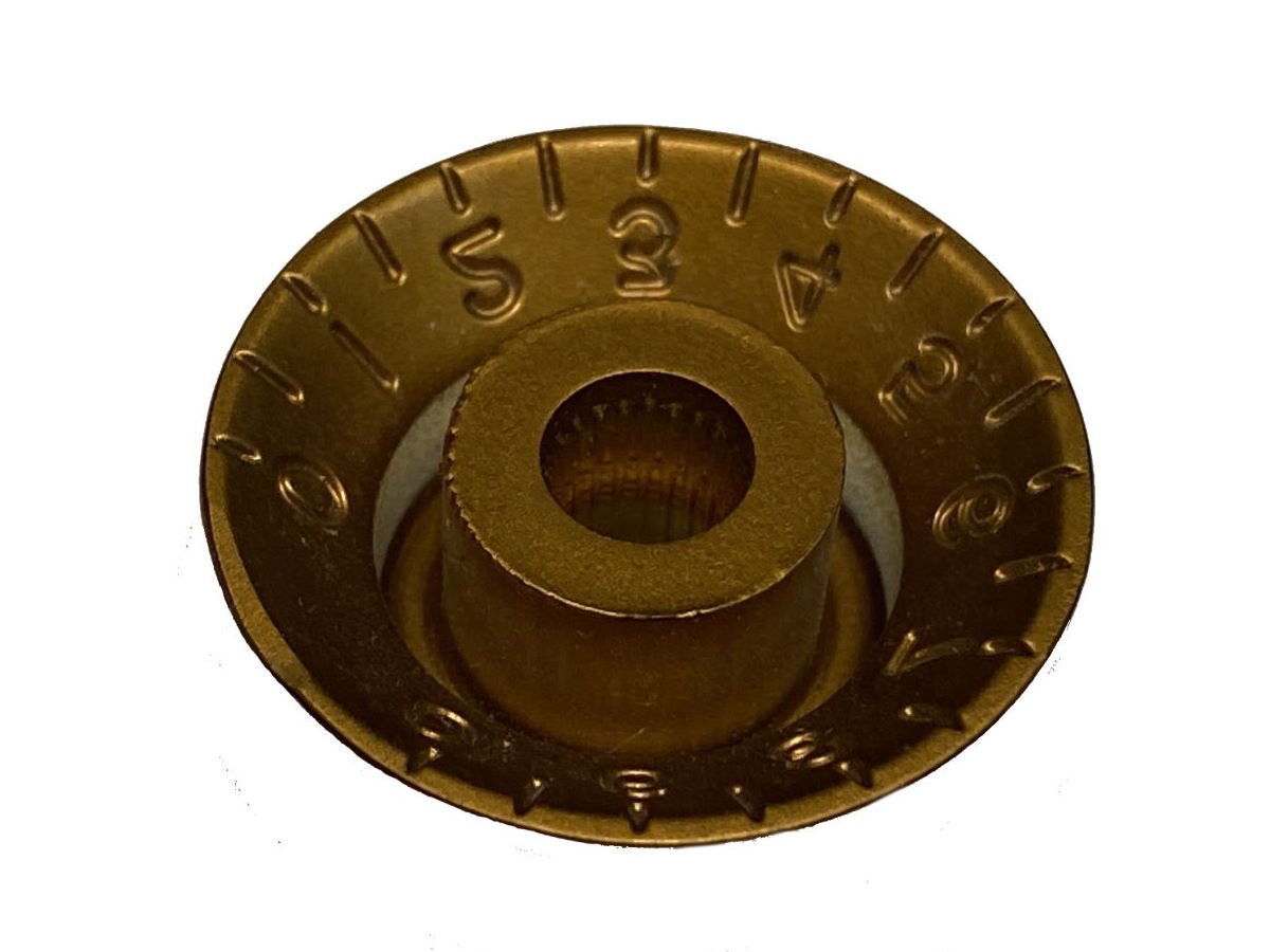 Vintage Style Top Hat Knob, with embossed numbers. These are the type of knobs used on Gibson guitars until 2006, when Gibson switched to an inferior knob of thinner, more fragile plastic, without embossed numbers. These are U.S. spec, 24 spline. Will fit U.S. spec split shaft pots, as used on all Gibson guitars and many other USA made guitars. Also for all pots sold by Corsa Components.